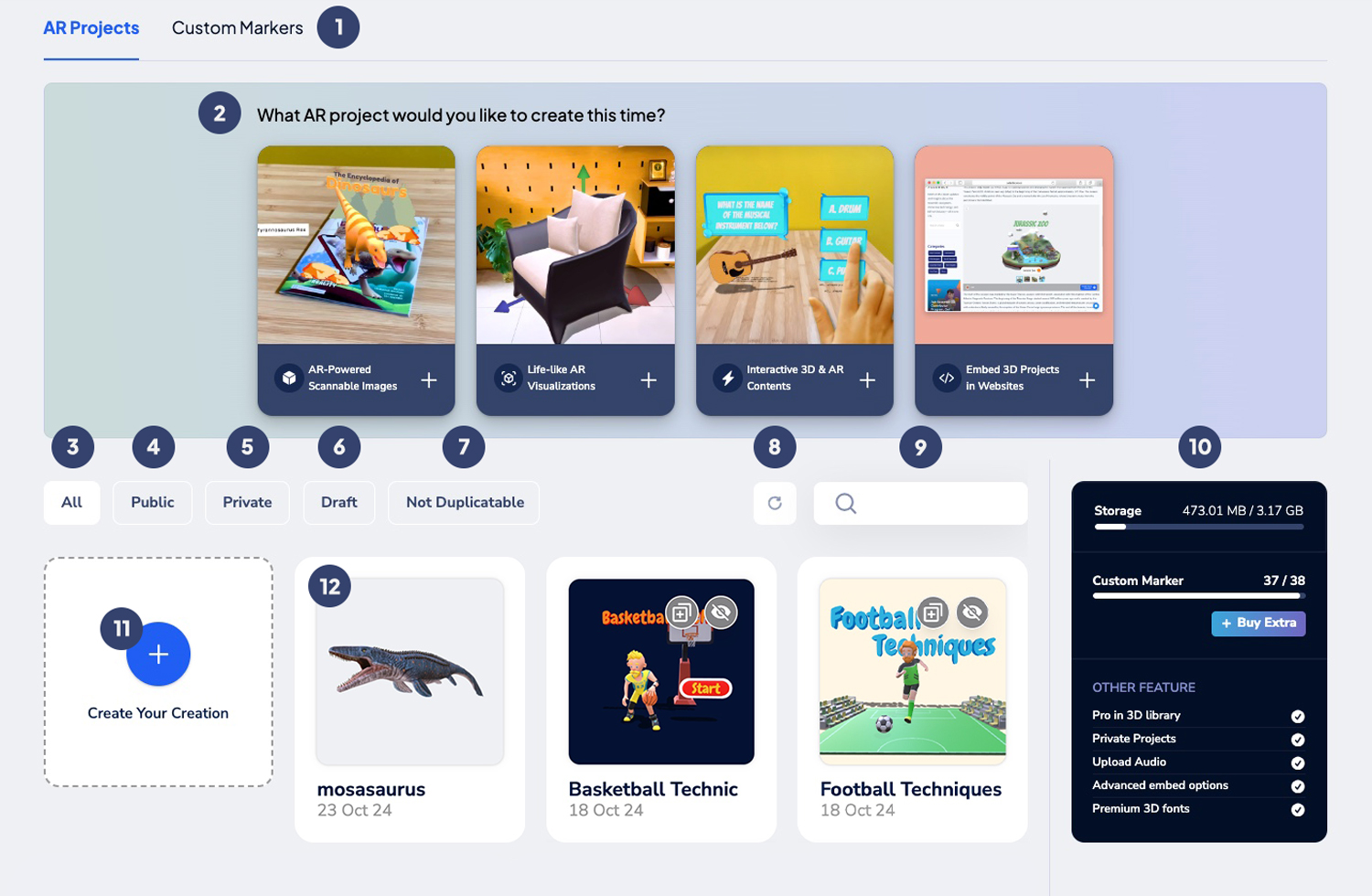 Once you're logged in, the first thing you will see is this **Project Dashboard**.&#x20;